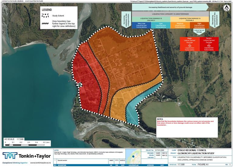 This report was based on geotechnical investigation of sediments underlying Glenorchy using data collected from boreholes and CPT (cone penetrometer tests). These were used to carry out an analysis of vulnerability to liquefaction and lateral spreading hazards.