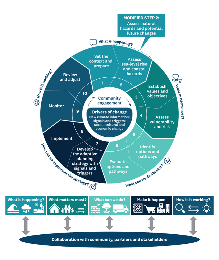 The Adaptation Pathways guidance is structured as a 10-step decision cycle, organised around five key questions: