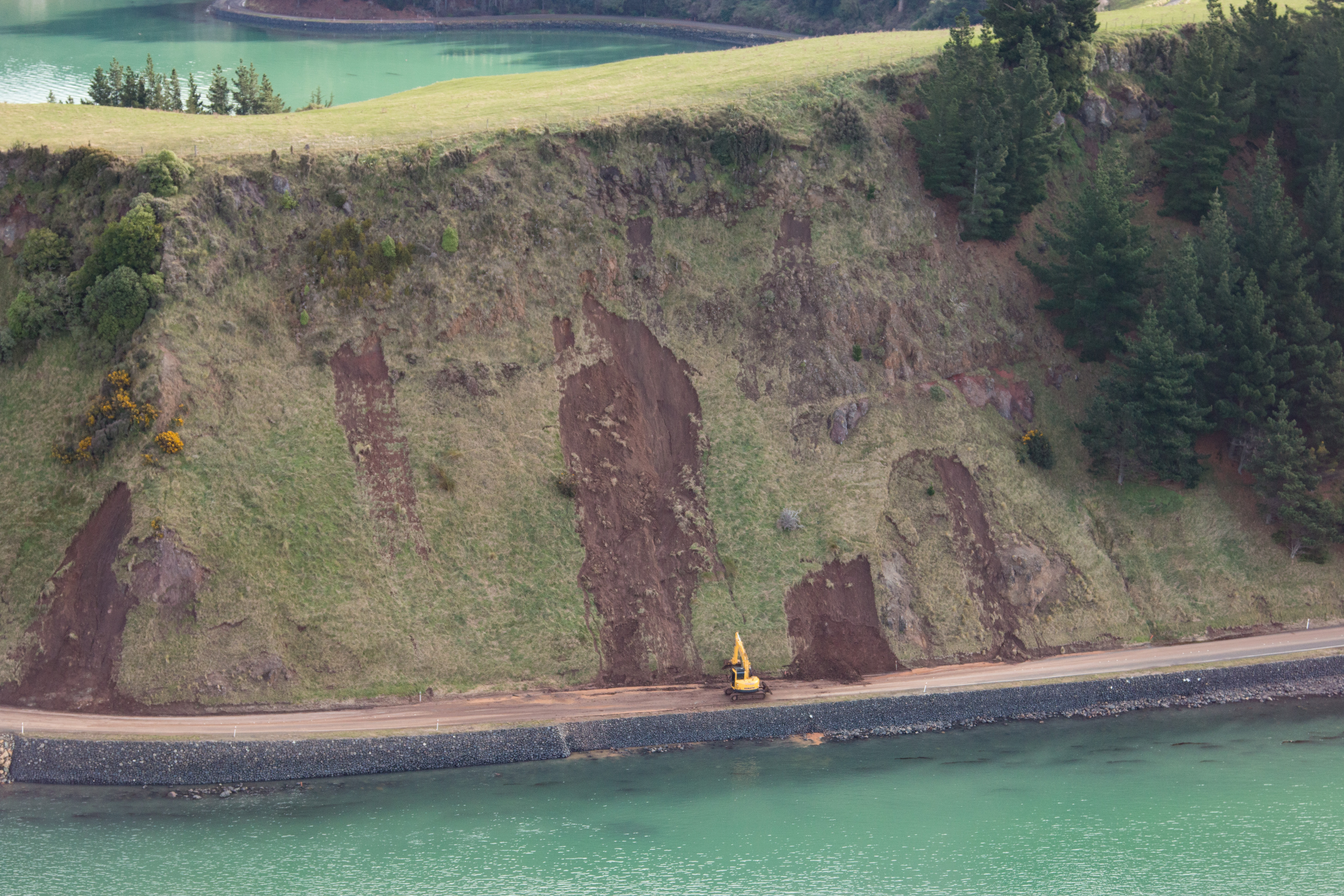 Digger working on natural hazard adaptations in Clutha