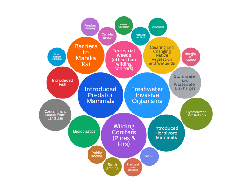 | Introduced Predator Mammals | Very high | Reduce introduced predator mammal populations (stoats, ferrets, weasels, rats, possums, hedgehogs and feral cats) |
