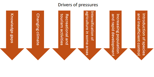 The bubble diagram below shows the analysis - the bigger the bubble, the bigger the pressure. The arrows show which drivers contribute to each pressure.