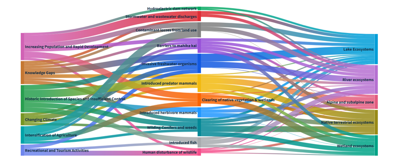 | Detail | Rare ecosystems like gravels, braided riverbeds, and bogs that support biodiversity and rare native species. |