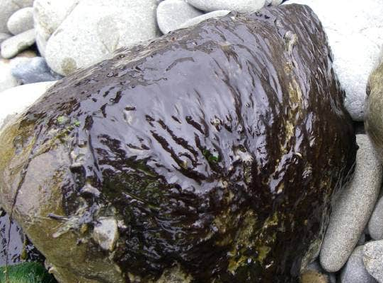 Phormidium forms thick dark brown mats on rocks in the riverbed and can sometimes look like black tar. In the flow of water, phormidium mats detach from the riverbed and wash up on riverbanks. Its musty smell is particularly attractive to dogs and, if eaten, phormidium can result in severe poisoning or death.